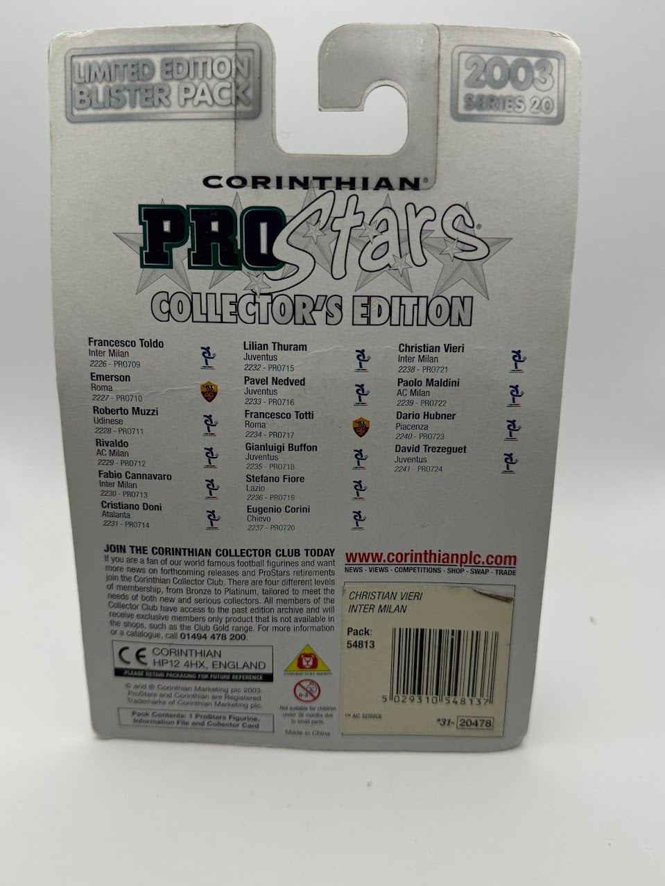 Christian Vieri - Corinthian ProStars Collector's Edition Series 20 - Inter Milan - PRO721