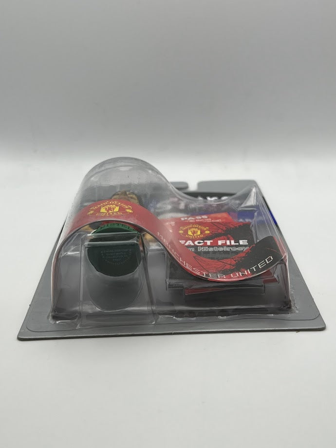 An unopened Corinthian football figure from the ProStars Quiz Game series, featuring Ruud Van Nistelrooy of Manchester United.